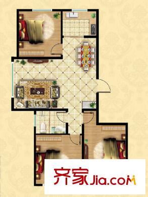 峡山中央华府22/27/31#G户型 3室2厅1卫1厨