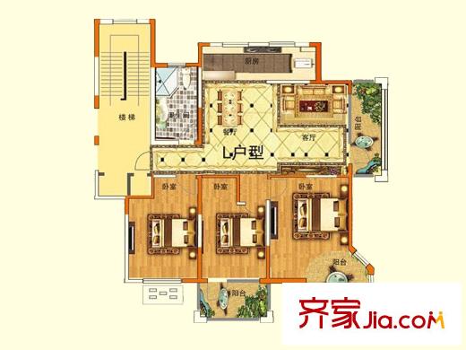 舜景苑一期高层23、24、25、26号楼L户型 3室2厅1卫1厨