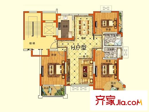 舜景苑一期高层23、24、25、26号楼H户型 3室2厅2卫1厨
