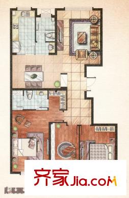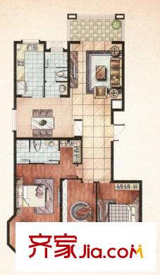 麒麟公馆一期高层住宅A2户型(售完) 3室2厅2卫1厨
