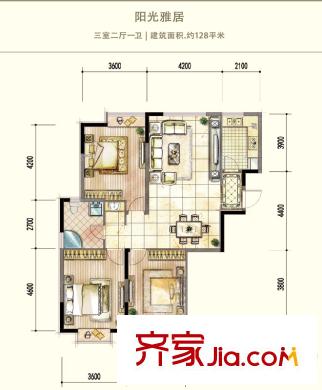德润康城一期高层阳光雅居CS3-08户型 3室2厅1卫1厨