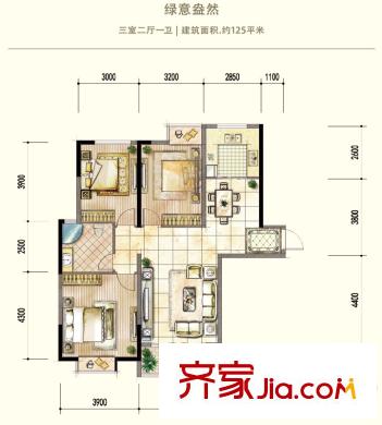 德润康城一期高层绿意盎然CS3-06户型 3室2厅1卫1厨