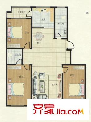 华安锦绣樱园二期多层住宅标准层D户型 3室3厅3卫1厨