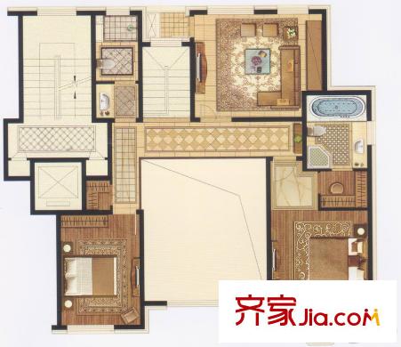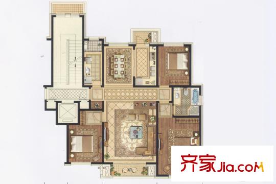 泛海拉菲庄园3/4/5#复式B3户型 4室3厅4卫1厨