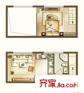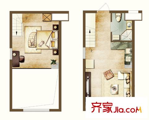 中经世界城一期LOFT公寓B户型 1室1厅1卫1厨