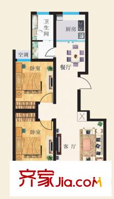 华都颐年园一期C户型标准层户型图 2室2厅1卫1厨