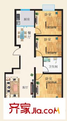 华都颐年园一期B户型标准层户型图 3室2厅1卫1厨