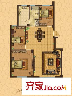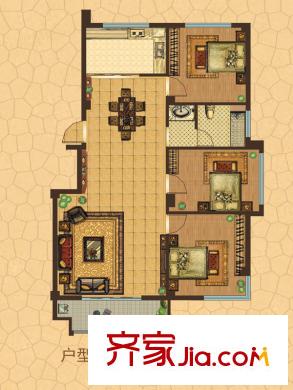 凤鸣郡和墅3#1-301平层户型 3室2厅1卫1厨