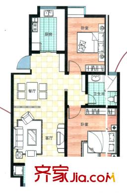 万合华庭一期多层1-10号楼B户型(售完) 2室2厅1卫1厨