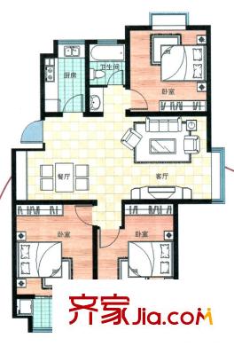 万合华庭一期多层1-10号楼A户型(售完) 3室2厅1卫1厨