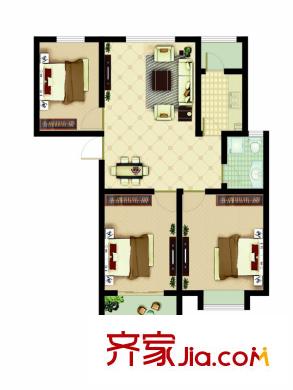 将军府1-5号楼D户型 3室2厅1卫1厨