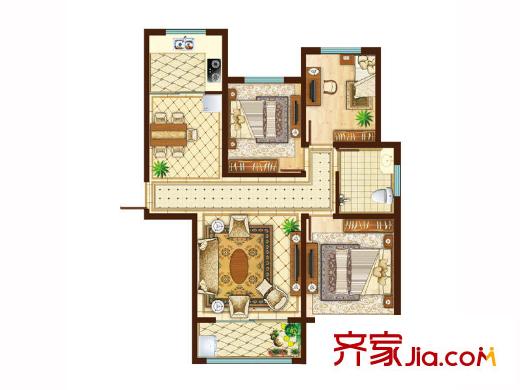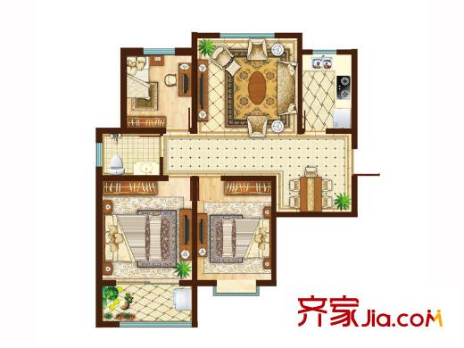 北京宫馆项目一期高层户型图 3室2厅1卫1厨