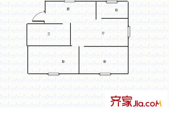 世嘉铭园户型图104三居800x540 3室2厅1卫1厨