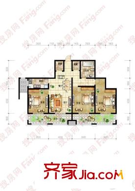 中央广场三角花园E2'户型 3室2厅1卫1厨