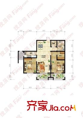 中央广场三角花园D2'户型 2室2厅1卫1厨