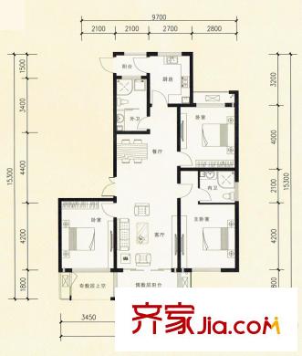 清江嘉园B户型 3室2厅2卫1厨