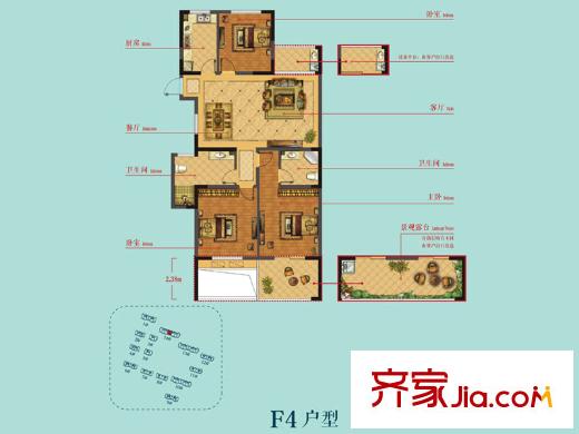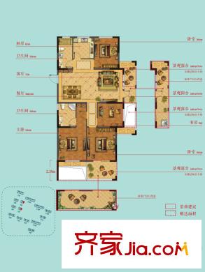 中嘉银都水岸F4户型 3室2厅2卫1厨