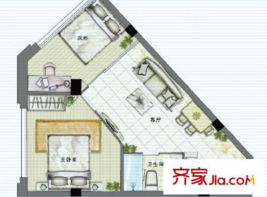 乐润幸福财富中心57平方米户型图 2室1厅1卫1厨