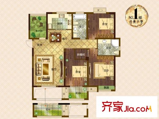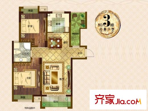 米兰浅山郡F户型图 3室2厅2卫1厨