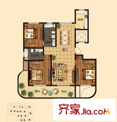 沁芳名苑C1户型 3室2厅2卫1厨