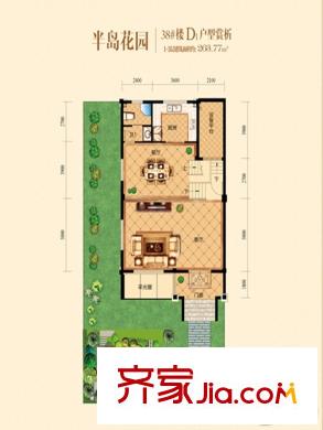 北辰半岛花园38#D1户型一层 5室2厅5卫1厨