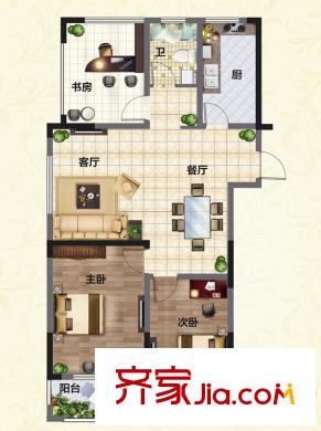 金都御景1#C户型 3室2厅1卫1厨