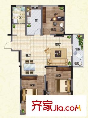 金都御景2#A户型 3室2厅1卫1厨