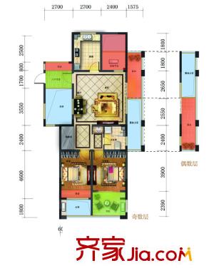 庆盛华府一号院3室2厅2卫139方户型 3室2厅2卫1厨
