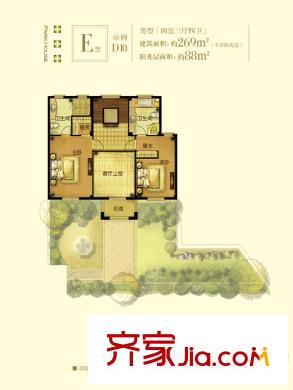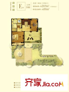 九城公园墅E户型顶层 4室3厅4卫1厨