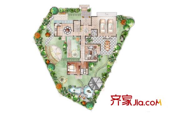雨润涵月楼独栋别墅C户型一层 3室3厅4卫1厨