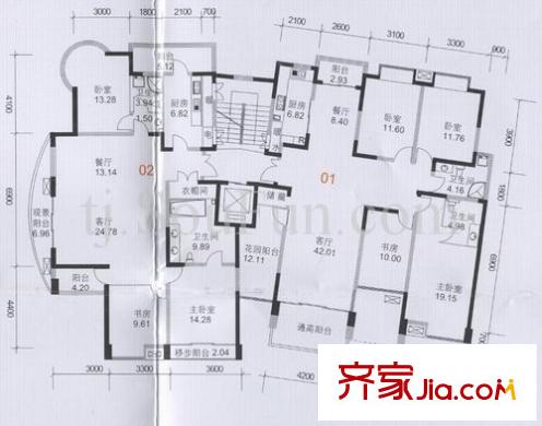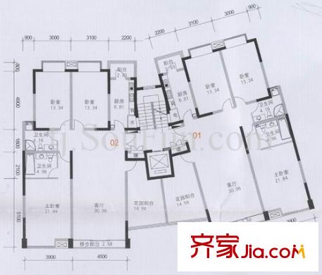 泰达时代户型图C2 3室2厅2卫