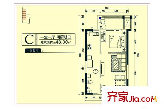 V7星公馆1号楼C户型 1室1厅1卫1厨