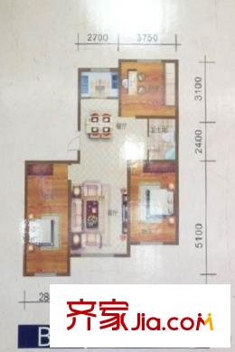 金吉利小区B2户型三室两厅一卫111.55平方米 3室2厅1卫1厨